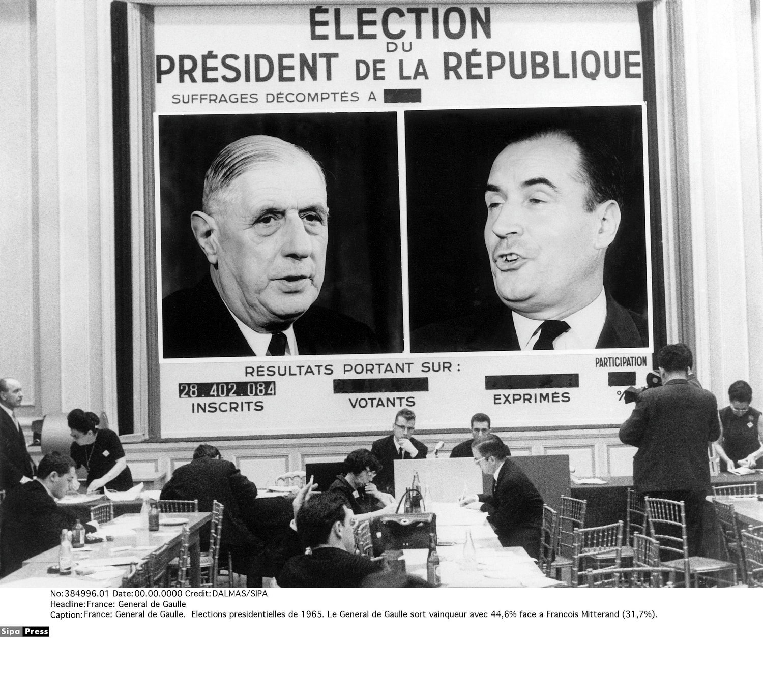 Jajak pendapat telah lama menguntungkan De Gaulle, namun berbalik menentangnya pada periode terakhir menjelang pemilu. Jenderal tidak terlalu memperhatikan hal itu. Para komentator akhirnya meyakinkan diri mereka sendiri bahwa pemungutan suara akan berlangsung ketat, tetapi bayangkan ketidaknyamanan seperti itu… Putaran kedua, pada tanggal 19 Desember, tidak benar-benar mengubah kesan yang ditinggalkan oleh putaran pertama: Charles de Gaulle terpilih kembali untuk masa jabatan tujuh tahun yang baru dengan 55,2% suara. Mitterrand…