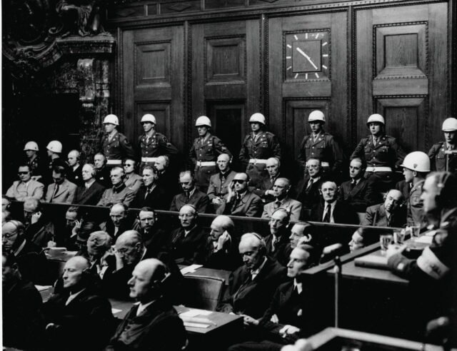 Setelah Hitler, Goebbels dan Himmler bunuh diri, Hermann Göring menjadi pejabat tertinggi Reich yang masih hidup. Para terdakwa lainnya termasuk Rudolf Hess, kepala Kanselir Partai Nazi; Joachim von Ribbentrop, Menteri Luar Negeri; Wilhelm Frick, penulis utama Hukum Nuremberg yang anti-Semit tahun 1935; Karl Dönitz, penerus Hitler; Albert Speer, arsitek Hitler dan kepala Kementerian Persenjataan; atau bahkan Franz von Papen, mantan kanselir sebelum IIIe Reich dan kemudian duta besarnya.