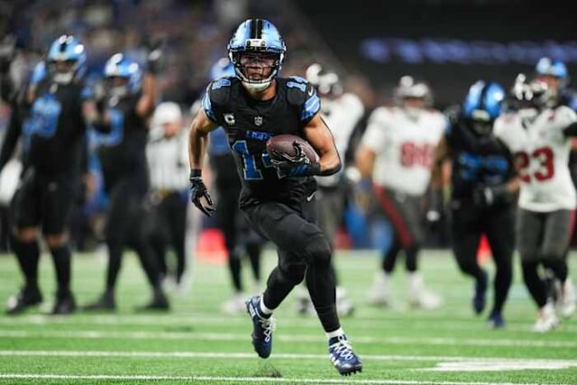 DETROIT – Bintang Detroit Lions Amon-Ra St. Brown mengadakan acara Strike for Literacy di pusat kota.