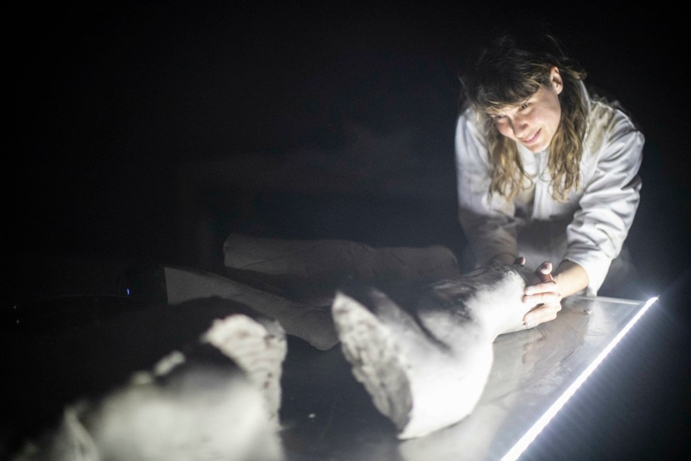 Dengan penanganannya terhadap tanah liat yang memberi Tubuh yang tidak dapat binasa aksen ritual yang samar-samar mengingatkan seniman akan esai penting tentang kematian, dan lebih khusus lagi tentang duka. Atau Untuk kebahagiaan orang mati (2015) oleh filsuf Vinciane Despretyang menunjukkan perlunya menemukan cara-cara baru untuk hidup bersama orang mati, sebagai respons terhadap kecenderungan kita saat ini yang secara radikal mengisolasi kematian dari kehidupan. Jika buku ini tidak dikutip, maka ada buku lain yang akan terus terombang-ambing antara presentasi dan pertunjukan, tanpa ketidakseimbangan yang mengarah pada refleksi.. Dengan mengutip filsuf lain khususnya, orang Australia Val Plumwoodyang, dalam bukunya Mata buaya (2021), berbicara tentang revolusi intelektual yang dialaminya saat diserang buaya – ia kemudian memahami bahwa manusia telah lolos dari rantai makanan – Aurélia Lüscher mengungkap bagian lain dari prosesnya. Dengan tidak memfokuskan penelitiannya pada apa yang dapat dilakukan teater khususnya dalam kaitannya dengan representasi dan pertanyaan tentang kematian, sang seniman menyalahkan seninya karena tertinggal dari banyak disiplin ilmu yang telah melihat kematian selama beberapa dekade, serta cara penanganannya di dunia kita, terlindung dari pandangan orang-orang yang percaya bahwa Bumi adalah milik mereka. Memori sebuah pertunjukan dengan subjek yang sama, Pelarian (2023), kembali kepada kita dengan kekuatan yang lebih besar karena penulis dan penerjemahnya adalah orang Belgia Filemon Vanorlébaru saja memasuki dunia yang dia bicarakan dengan absurditas yang sangat halus dan aneh. Menceritakan lintasan penemuan pribadi, sebuah peti yang tiada duanya, seniman ini mendekati subjeknya dengan kegilaan dan, yang terpenting, dengan sudut yang tepat dan penuh tekad yang diperlukan untuk upaya semacam itu. Tubuh yang tidak dapat binasa hancur karena kurangnya bahan-bahan penting ini.