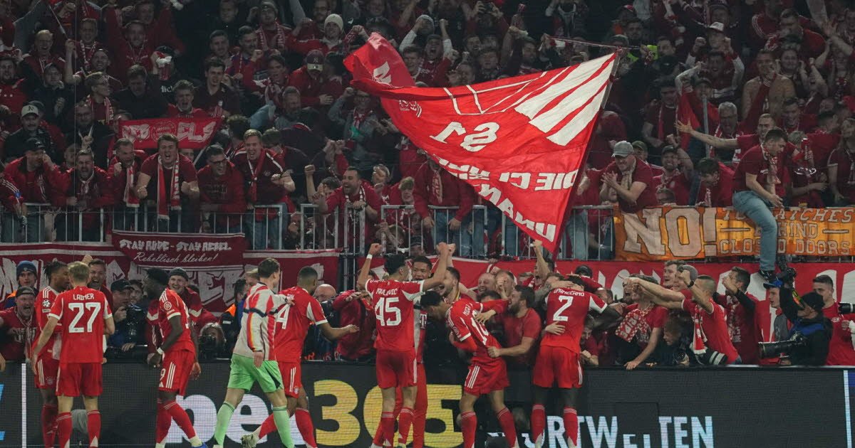 Setelah kemenangan leg pertama mereka di Madrid seminggu lalu, Bayern tertinggal tiga angka dari Real pada hari Rabu (0-1, 1-2, 2-3) sebelum meraih kemenangan di penghujung pertandingan berkat gol Luis Diaz dan Michael Olise. Setelah gol Olise, beberapa pendukung berjalan melewati gerbang tribun mereka dan pergi untuk merayakan kemenangan di bagian stadion yang terlarang bagi mereka, membenturkan para fotografer ke panel iklan yang menyala, sambil melakukan kontak dengan pemain tertentu di sisi lain.