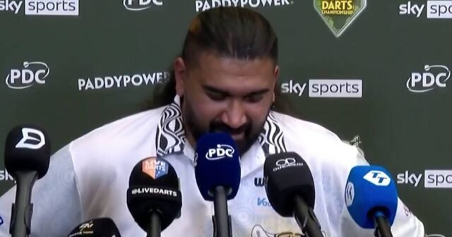 Home Sports Bintang Darts menahan air mata saat konferensi pers berbicara tentang ibu dan...
