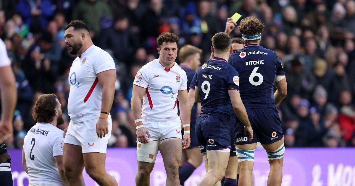 Setelah 10 menit di dalam keranjang, pemain sayap itu kembali mencoba mencetak gol sebelum mendapat kartu merah setelah 20 menit karena melanggar pemain Skotlandia Kyle Steyn di udara.