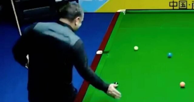 Meski masih memimpin pertandingan best-of-11 dengan skor 5-4, pemain Skotlandia yang marah itu dengan keras membanting bola hitam ke atas meja dengan tangan kanannya saat ia kebobolan frame. Saat benda itu memantul bolak-balik antara bantalan penyangga dan bantalan atas, dia berjalan mendekat untuk duduk di kursinya, meskipun dia tampak frustrasi.