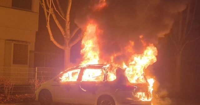Sebuah mobil mulai terbakar ketika sedang melaju dan kemudian terbakar habis ketika berhenti di pinggir jalan, Avenue d’Alsace di Colmar, dekat Komunitas Eropa Alsace, sekitar pukul 19.40 pada hari Jumat, 23 Januari.
