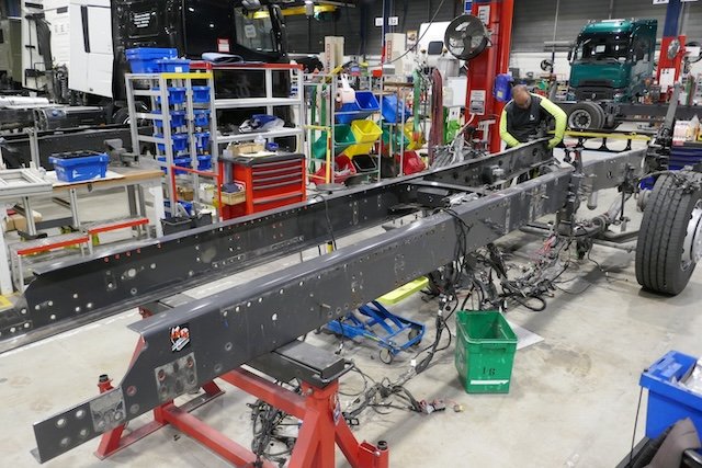 Rahasia Renault Trucks adalah mereka telah melakukan industrialisasi pada fase penyesuaian dan konversi sasis. “ Kami terintegrasi sempurna ke dalam arus pabrik » jelas Laurent Genillon, direktur operasi pusat adaptasi. Bengkel ini memiliki kantor desain sendiri (sekitar tiga puluh orang), mendokumentasikan semua pekerjaan sesuai dengan prosedur yang sama seperti model “standar” dan juga disetujui UTAC untuk pekerjaan badan industri. Dia bisa merakit peralatan dan badan dari Meiller, Palfinger, Wielton atau Gervasi.