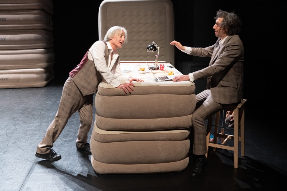 Di antara ketiganya, dipandu oleh sutradara Sophie Cusset, muncullah simbiosis langka, di mana kesenangan bermain adalah kesenangan untuk dilihat.. Latihan berminggu-minggu, yang bisa kita bayangkan seru, memungkinkan ketiganya merobohkan semua tembok, menghancurkan kesedihan tanpa jatuh ke dalam sinisme, menantang humor tanpa menggunakan sikap ringan. “ Pada awalnya saya takut teks tersebut akan mengesankan Thomas dan Grégoire, bahwa mereka tidak akan membiarkan diri mereka menyalahgunakan kebebasan yang saya berikan kepada mereka karena mereka tidak berani menertawakan saya, tetapi petualangan manusia merenggut segalanya.”aktor itu bersukacita. Seiring berjalannya adegan, kami menjauh dari garis tanpa masalah apa pun Penyeberangan Paris hingga bahasanya yang tergelincir dan tidak dapat diperbaiki lagi, dari permainan kata-kata sederhana di MSA – “Menjadi MSA tidaklah mudah” – Ironisnya nasib seorang aktor yang dilahap badut yang sudah lama ia perankan: “Ahli saraf mengatakan kepada saya bahwa mungkin saya selalu sakit (…) tetapi tubuh saya memberikan kompensasi dan hari ini kemampuan saya untuk memberikan kompensasi diserang. Secara naluriah sang aktor mengambilnya, mengubahnya menjadi sebuah karakter. Sekarang dia telah mengambil alih, kata-kata itu terus keluar, saya tersandung di dalamnya, saya melucu sendiri.”