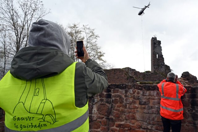 Pada akhir Maret, sebuah helikopter melakukan banyak rotasi antara Grendelbruch dan Kastil Guirbaden, di ketinggian Mollkirch, untuk mengangkut elemen perancah yang diperlukan untuk pemulihan benteng.