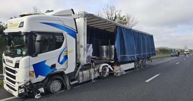 Kecelakaan dengan truk dan mobil terjadi tak lama setelah pukul 10 pagi pada hari Selasa 7 Oktober di A43 Snelweg di kota Vaulx-Milieu, ke arah Chambéry.