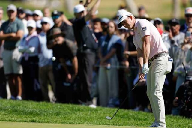 Namun dia menemukan bunker pada menit ke-16 dan harus melakukan bogey putt setinggi 5 kaki agar tetap berada di puncak. Peluang birdie-nya pada tanggal 17 dan 18 sangat kecil di lapangan hijau di mana putt pendek bisa jadi menakutkan.