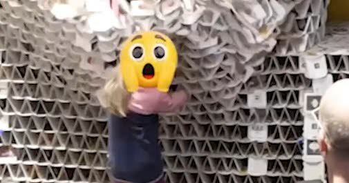 Benjamin Klapper menghabiskan 120 jam membuat patung menggunakan 63.000 alas bir. Seorang gadis kecil menarik salah satu tatakan gelas ini dan semuanya runtuh.