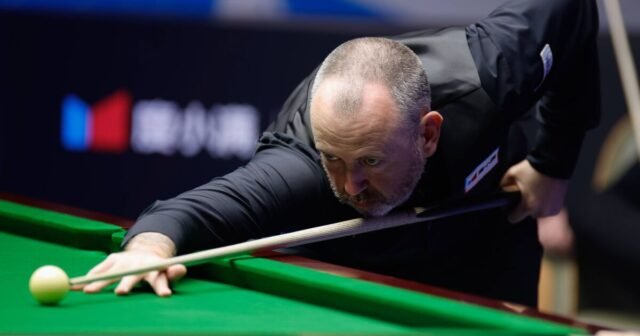 XI’AN, CHINA – 12 OKTOBER: Mark J Williams dari Wales melakukan pukulan pada pertandingan semifinal melawan Daniel Wells dari Wales pada Hari ke-6 Grand Prix Xi’an 2025 di Qujiang Athletic Center pada 12 Oktober 2025 di Xi’an, Provinsi Shaanxi, Tiongkok. (Foto oleh Tai Chengzhe/VCG melalui Getty Images) (Gambar: Tai Chengzhe, VCG melalui Getty Images)