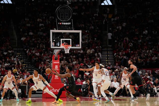 HOUSTON – Pertandingan hari Senin antara Houston Rockets dan Phoenix Suns sempat ditunda karena kerusakan jam dan papan skor sebelum pertandingan dilanjutkan tanpa fungsi.