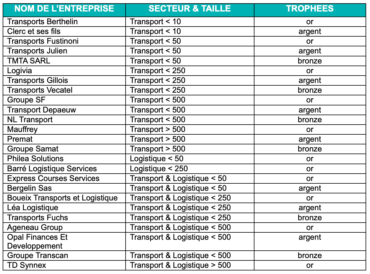 Pada 12 November 2025, Palais du Luxembourg di Paris menjadi tuan rumah upacara penghargaan Piala Label Transportasi & Logistik yang Bertanggung Jawab. Di hadapan Senator Franck Dhersin dan mitra Label, acara ini memberikan penghargaan kepada 25 perusahaan di antara 81 pemenang tahun 2025 atas kinerja ESG (Lingkungan, Sosial, Tata Kelola) terbaik mereka.