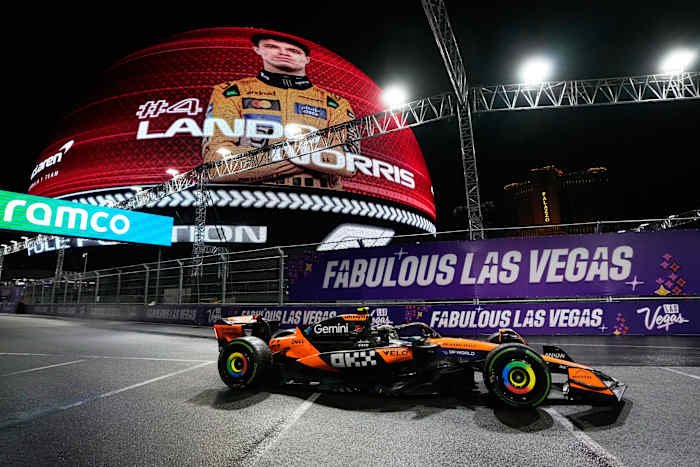 LAS VEGAS – Penantang gelar Formula Satu menguasai Las Vegas Strip yang basah dan licin dalam sesi kualifikasi yang diguyur hujan pada Jumat malam, dengan pemimpin kejuaraan Lando Norris mengambil alih posisi terdepan.
