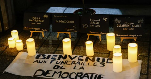 Peringatan dadakan untuk “Penguburan Demokrasi”, di Schiltigheim, Kamis depan, 15 Januari. Foto Thomas Toussaint
