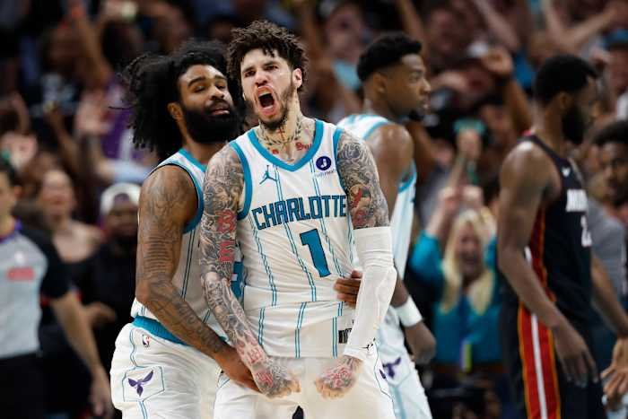 Ball menyelesaikan pertandingan dengan 30 poin dan 10 assist dan Bridges menyumbang 28 poin dan sembilan rebound saat Hornets memenangkan pertandingan kandang pascamusim pertama mereka dalam satu dekade. Coby White menyumbang 19 poin, termasuk turnaround 3 dengan waktu tersisa 10,8 detik dalam regulasi untuk mengirim permainan ke OT.
