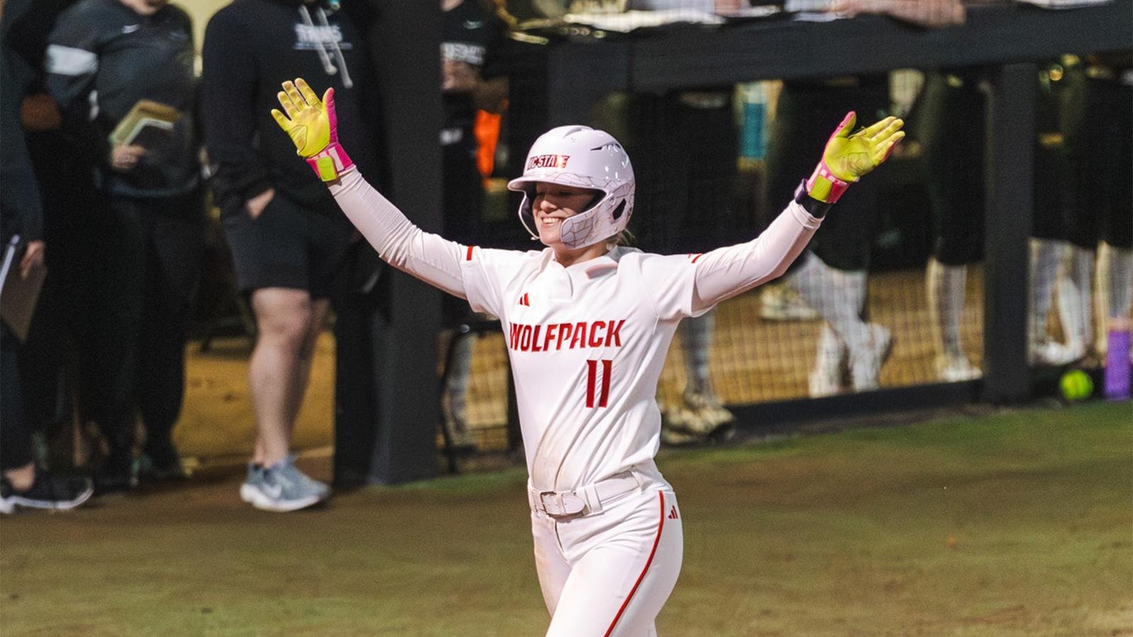 - Wolfpack merespons di posisi terbawah yang pertama, mencetak lima run dalam lima pukulan dan dua kali berjalan. senior Maia Townsend dimulai dengan single, diikuti oleh mahasiswa baru Carly Pendek Mencapai dampak nada dan Kendall mendidih menggambar jalan-jalan.