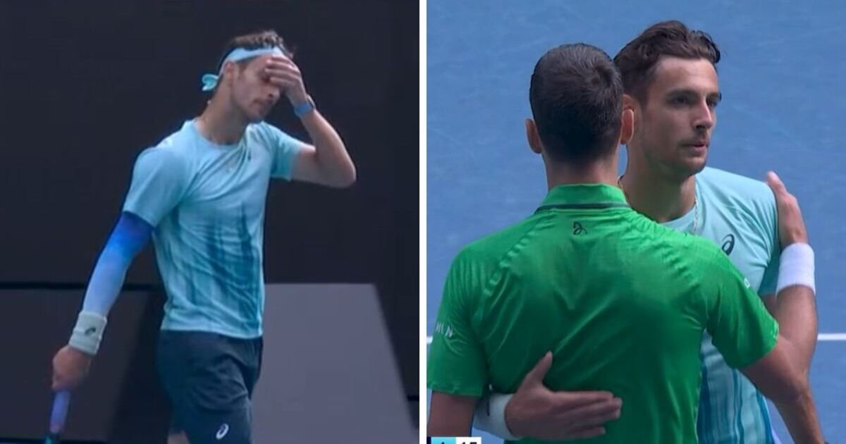 Pemain berusia 23 tahun itu mencoba untuk terus bermain, tetapi hampir tidak bisa bergerak dan tidak bisa melakukan servis. Dia akhirnya kalah 3-1 dan 15-40 pada set ketiga, menggelengkan kepala dan menutupi wajahnya karena tidak percaya saat mendekati net untuk menjabat tangan Djokovic.