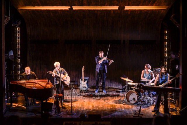 Petualangan besar dalam hidup kecil kita, diperbesar dalam nyanyian, melodi yang tak terhapuskan untuk perasaan yang terlalu besar, kata-kata pinjaman untuk menggantikan keheningan kita, pengaturan untuk menenangkan insomnia kita, kekurangan dan kesedihan kita, untuk mencerminkan rahasia atau kesedihan seorang ibu, perubahan suasana hati seorang gadis muda dalam mencari dirinya sendiri, cinta yang menampakkan hidungnya di lekuk wajah yang diiringi musik. Di atas panggung, tanpa kemegahan dan keadaan, para aktor memberikan jiwa dan raga mereka pada interpretasi lagu-lagu yang diaransemen khusus, sementara semua orang memahami dialog mereka dengan porositas yang mengharukan. Tidak ada karakter yang disembunyikan, tidak ada peran untuk disaring dan kami menemukan kembali dengan kegembiraan yang tidak ada namanya dua generasi ini di atas panggung. Pemuda diwakili oleh Léa Lopez dan Axel Auriant, keduanya menyenangkan dan multi-talenta, sementara kedewasaan diwujudkan oleh Véronique Vella dan Thierry Hancisse, yang berada di puncak bidangnya. Jarang sekali kita melihat Thierry Hancisse begitu karismatik dan memukau. Bagaikan seorang koboi yang bernyanyi sendirian, dengan suara lantang seorang penyanyi yang sudah berpengalaman, ia mempunyai kekuatan untuk meluluhkan hati yang paling bandel. Duetnya dengan Véronique Vella membuat kita terdiam. Dari dahi hingga dahi, rambut mereka nyaris acak-acakan, lain lagi cerita yang dituturkan dalam diam, keterlibatan dua seniman yang sekian lama bekerja di bawah satu atap.