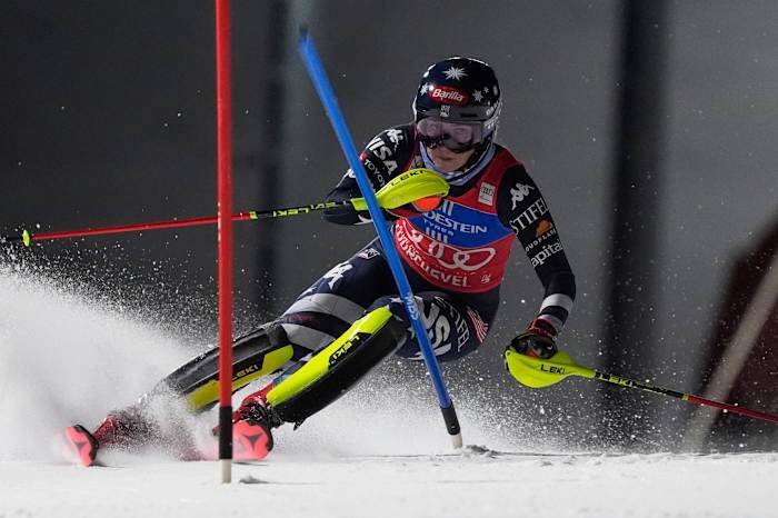 Home Sports Mikaela Shiffrin memimpin putaran pertama slalom malam saat para pesaingnya goyah di...