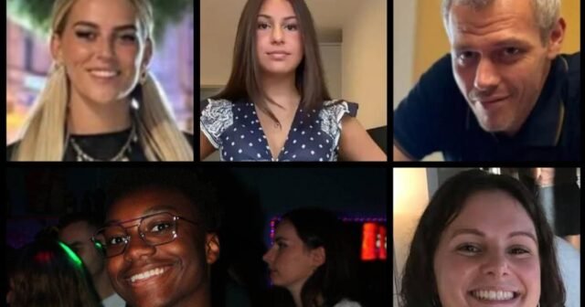 dua wanita Perancis 26 tahun dan 33 tahun, seorang Perancis-Swiss 24 tahun dan seorang Perancis-Israel-Inggris 15 tahun dan lima orang Prancis (satu berusia 14 tahun, satu berusia 17 tahun, satu berusia 20 tahun, satu berusia 23 tahun, dan satu lagi berusia 39 tahun)