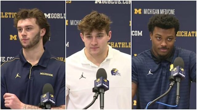 ANN ARBOR, Mich. — Tiga pemain sepak bola Michigan berbicara pada hari Jumat untuk pertama kalinya sejak pemecatan dan penangkapan pelatih kepala mereka, Sherrone Moore.