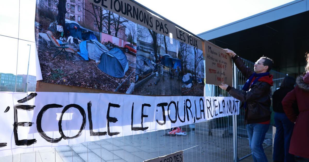 “Nyonya Walikota, apakah Anda menunggu respons atas sebuah tragedi? Selamatkan keluarga ini!” “Jangan berpaling!” “Anak-anak ini dalam bahaya!” » Dipasang di dekat bekas kamp Krimmeri – dibongkar untuk keempat kalinya, manu militari, pada tanggal 8 Januari – dua orang dewasa dan empat anak bungsu mereka, berusia antara 6 dan 15 tahun, telah tinggal di tenda selama lebih dari delapan bulan, dan sekarang tanpa air, di tempat parkir sekolah menengah Couffignal di Strasbourg, di Meinau.