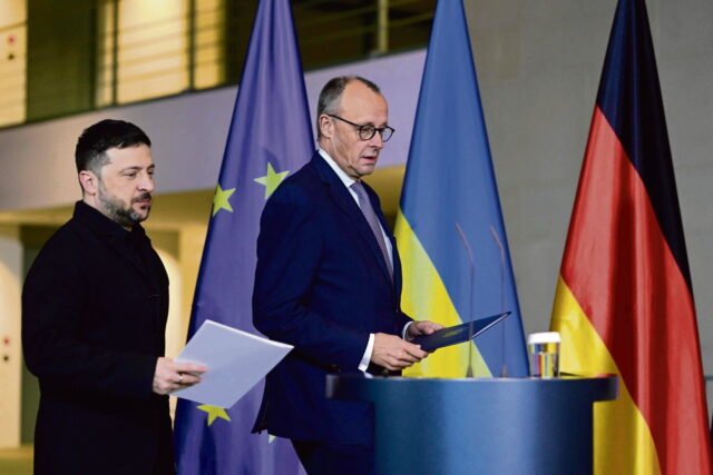 Perundingan yang dimulai di Berlin pada hari Minggu menandai minggu penting bagi Ukraina. Di ibu kota Jerman, pembicaraan mengenai 20 poin rencana Trump untuk mengakhiri perang berakhir pada Senin malam dengan pertemuan antara Perdana Menteri Inggris Keir Starmer, Presiden Prancis Emmanuel Macron, Sekretaris Jenderal NATO Mark Rutte, Presiden Ukraina Volodymyr Zelensky dan Kanselir Jerman Friedrich Merz. Turut hadir pula para pemimpin Denmark, Finlandia, Italia, Belanda, Norwegia, Polandia dan Swedia, serta Presiden Komisi Eropa, Ursula von der Leyen….