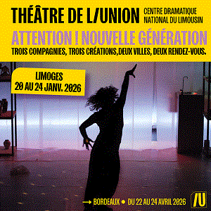 Théâtre de l’Union, Pusat Drama Nasional Limousin, menyelenggarakan acara khusus dari 20 hingga 24 Januari 2026: “Perhatian! Generasi Baru”, yang didedikasikan untuk kreasi muda di Nouvelle-Aquitaine dengan Glob Théâtre di Bordeaux dan Kantor Artistik wilayah Nouvelle-Aquitaine.