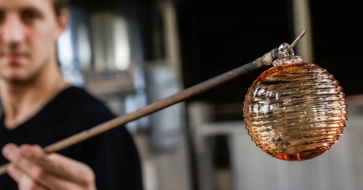 Bahan mentahnya yang mengejutkan, kata-kata dan ekspresi idiomatik yang dia suka mainkan. “Pada kunjungan pertama saya ke Meisenthal, saya diberi sebuah gelas pernak-pernik Natal dan saya takut saya akan menjatuhkannya! Ungkapan yang terlintas di benak saya adalah “mencegah lebih baik daripada mengobati” dan dari situlah saya mendapatkan ide tentang bola anti selip ini (disebut “Grip”, catatan editor) untuk mencegahnya terlepas dari tangan dan pecah,” jelas Lucas Lorigeon sambil bercanda. Berbentuk bulat, “Grip” tersedia dalam enam warna. Permukaannya ditutupi garis-garis yang menciptakan efek optik dan cahaya. Tapi itu bukannya tidak bisa dipecahkan.