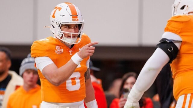 Jalur Aguilar yang tidak biasa membawanya ke kesempatan sekali seumur hidup untuk menjadi starter di Tennessee pada tahun 2025, dan penduduk asli California ini memanfaatkan sepenuhnya peluang tersebut dengan menyusun musim yang memecahkan rekor di mana ia memimpin SEC dalam passing yard dan melakukan 24 touchdown pass.