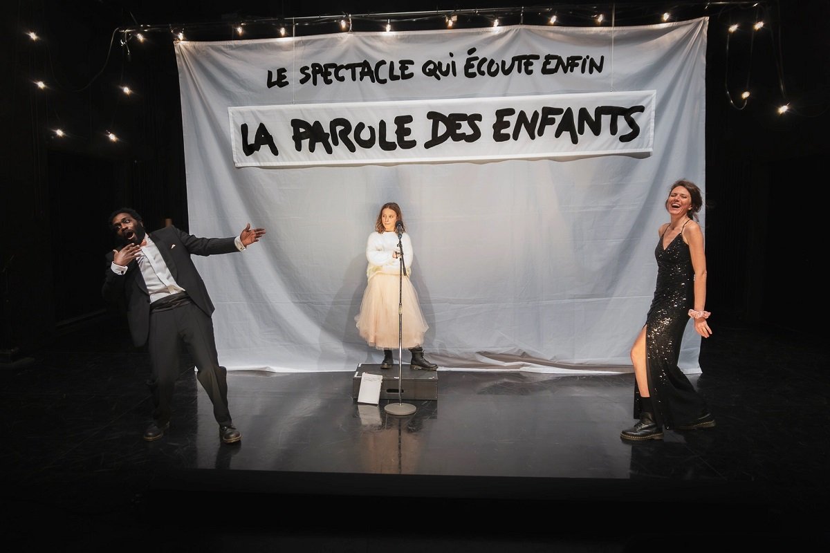 Bagaimana jika kita meluangkan waktu untuk mendengarkan apa yang dipikirkan anak-anak? Seorang pria dan seorang wanita, berpakaian rapi, menyajikan acara malam itu di mana kita diundang dengan penuh kemegahan dan upacara. Gadis muda di sisi mereka diharapkan untuk berbicara, sebuah inisiatif yang patut mendapat tepuk tangan di dunia yang terpecah dan mengutamakan kebebasan berbicara. Namun dalam melakukan hal tersebut, kedua orang dewasa tersebut tidak pernah memberinya kesempatan untuk berbicara dan terus berbicara tanpa henti. Untuk membuat mereka merasa senang, anak tersebut tetap diam ketika akhirnya tiba gilirannya.