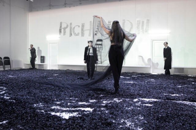Duduk di kursi di sudut, seperti anak yang tidak dicintai, tidak berpartisipasi dalam pesta, Duke of Gloucester, yang sudah mengalahkan ini “Sinar matahari York” yang kilapnya akan segera memudar, tidak kemudian dijadikan sebagai satu-satunya sumber segala kemalangan di masa depan, karena entah apa rasa iri atau dendam yang dipertajam oleh aspek fisik ini. “berubah” yang dia gambarkan sebagai dirinya sendiri, tetapi sebagai seorang oportunis yang akan memanfaatkannya “kegembiraan yang remeh” dan di suatu tempat, pikirnya, dari kebodohan ambisi para elit yang terpecah belah dan penuh kebencian untuk melaksanakan usahanya dalam penaklukan dan mempertahankan kekuasaan. Para pecinta teater mengetahui hal ini dengan sangat baik: masa depan Richard III tidak menghindar dari tantangan atau kejatuhan apa pun. Selain banyak negosiasi dan plot lain yang dia pimpin di sana-sini, dan seringkali secara paralel, dengan pihak Janus, dia mulai dengan kakak laki-lakinya Clarence, yang dinodai oleh ramalan palsu, dilanjutkan dengan bangsawan Hastings, yang dituduh sebagai pengkhianat, dan berakhir, atau hampir, dengan dua putra Edward, yang sekarang sudah mati, yang telah dia bunuh di Menara London yang terkenal, tempat dia memenjarakan mereka. Permainan pembantaian ini, yang sepertinya tidak pernah berhenti karena mesinnya begitu terbawa suasana, tidak membuat Richard sendirian dan bertanggung jawab sepenuhnya.. Tanpa tentu saja membebaskannya atau mengurangi perannya, sutradara asal Israel ini mencoba menekankan kepicikan, keterlibatan, dan hal-hal lain yang terjadi di sekitar pria tersebut. Dalam kehancuran moral ini, hanya perempuan, dimulai dengan Elisabeth, istri Edward, Marguerite, ibu Richard, dan, pada tingkat yang lebih rendah, Lady Anne, yang menjadi sasaran Richard, yang dapat muncul sebagai sumber kejujuran. Kemudian muncullah kontur para elit dan, melalui mereka, sebuah masyarakat yang, karena mereka gagal secara etis, justru memungkinkan tiran yang haus darah itu naik takhta.