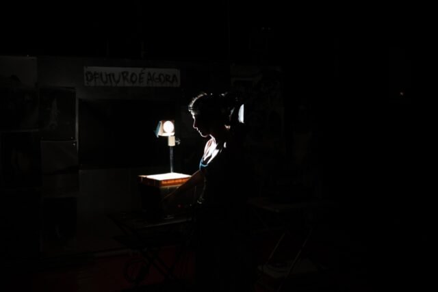 Di tengah peralatan bifrontal, diterangi oleh lampu merah dari lampu pengaman – yang, tidak seperti yang lain, memiliki sedikit efek fotokimia – ditempatkan satu set wadah plastik yang segera diisi oleh Gabriela Carneiro da Cunha dan Mafalda Pequenino dengan cairan bening. Produk ini tidak lebih dari sebuah pengembang, konsisten dengan yang digunakan dalam kimia perak, dimana tandemnya, satu demi satu, memandikan lembaran besar kertas peka cahaya untuk mengungkap gambar yang dikandungnya. Dalam apa yang dengan cepat menyerupai balet yang diritualkan dan dikoreografikan dengan terampil, gambar-gambar disajikan kepada kita, dan kemudian kita membedakan, dengan lebih atau kurang mudah, potongan-potongan tubuh, wajah anak-anak, orang-orang yang berisik, tetapi juga air ini yang dengan cepat kita asumsikan adalah milik Rio Tapajós.. Tak lama kemudian, suara seorang ilmuwan terdengar, yang tampaknya melaporkan kesimpulan studi lapangan. Penelitian ini merupakan penelitian yang dilakukan pada tahun 2019 oleh Dokter Paulo Basta tentang pencemaran merkuri yang mempengaruhi kawasan Munduruku Sawré Muybu. Hasilnya, yang disampaikan pada bulan September 2022 di pertemuan Mercúrio, yang dihadiri oleh Gabriela Carneiro da Cunha, bersifat konstruktif: hal ini menegaskan apa yang dirasakan masyarakat Munduruku secara langsung: kontaminasi merkuri yang besar dan mengkhawatirkan di seluruh tubuh anggotanya, dimulai dari anak-anak dan wanita hamil yang menginfeksi bayinya sendiri melalui cairan ketuban dan kemudian melalui susunya.