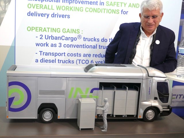 Standnya kecil, tapi proyeknya besar. Eric Poyeton yang sangat berpengalaman, presiden Incitis, memiliki sejumlah mantan insinyur dan manajer proyek dari Renault Trucks di sekelilingnya (termasuk Patrice Paletto, pengembang kabin dan bodi) di sekitar kendaraan pengiriman yang tidak biasa.