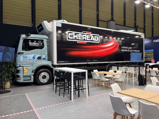 Berita besarnya adalah Chéreau Concept Trailer, model demonstrasi di pameran yang dapat menjadi pendahulu yang baik untuk semi-trailer Chéreau yang diumumkan pada tahun 2030 (untuk mempertimbangkan persyaratan Vecto Trailers). Kit aerodinamis lengkap, diffuser belakang yang unik, pencahayaan LED di bangku dan area batang derek, palang samping yang lebih tipis untuk meningkatkan ground clearance juga tersedia dalam program ini. Chéreau mengumumkan bahwa semua perbaikan akan mengurangi konsumsi pada kecepatan 90 km/jam sebesar -2,4 l/100 km. Panelnya menggunakan elemen kantong vakum VIP. Secara elektrik juga di bagian luar dengan Scania P400E dengan 624 kWh dipasang untuk struktur 21 palet (panjang berguna 8,964 m, tinggi 2,5 m) dengan spatbor baja tahan karat, rok, dan pelindung bagian dalam. Pintu belakang adalah Dhollandia DHSM 3000 kg. Unit pendinginnya adalah Carrier Syberia 14 Ecool.