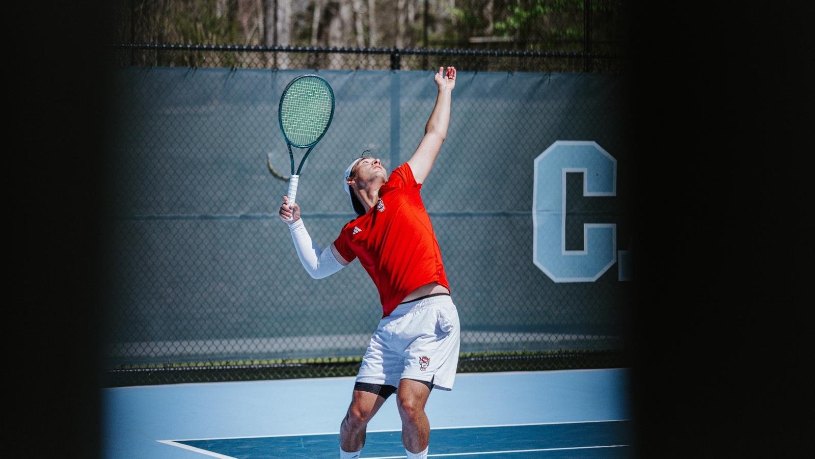 Beralih ke tunggal dengan poin ekstra untuk menyamakan kedudukan, Cody Benton memasuki barisan Merah Putih di lapangan keenam dan dengan cepat menjalani pertandingannya untuk mengklaim kemenangan 6-3 di set pertama. Setelah Benton memenangkan set kedua, NC State melaju ke event beregu, lalu maju mundur sepanjang sisa hari itu.