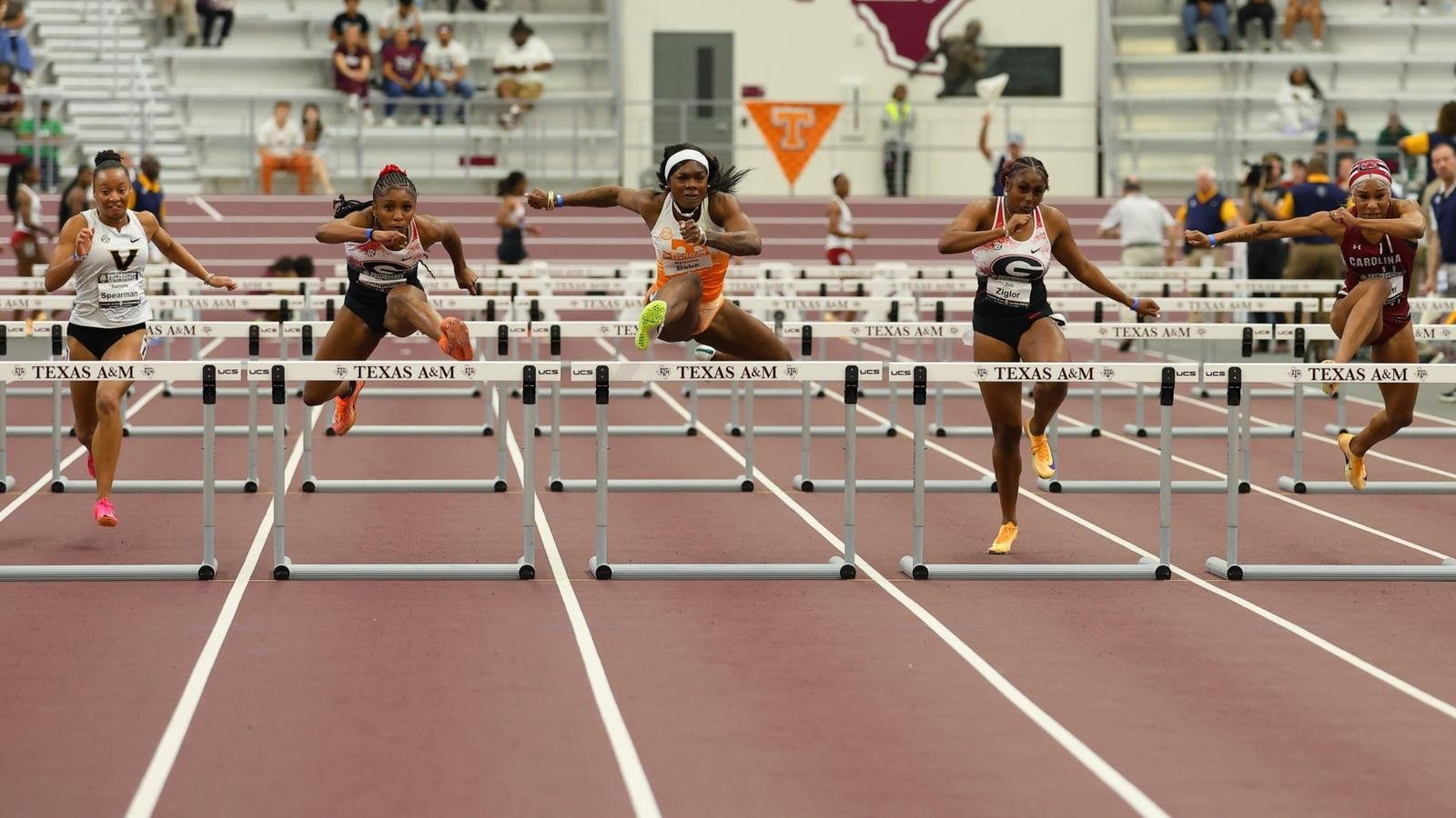 Tennessee melengkapi porsi putri hari Jumat dengan dua penampilan menonjol dalam lari gawang 60 meter. Juara bertahan SEC Myreanna Bebe membukukan 7,96 terbaik musim ini untuk mencapai final konferensi kedua berturut-turut Skye Tolbert menetapkan nilai terbaik pribadi 8,15, naik ke peringkat 9 dalam sejarah sekolah.