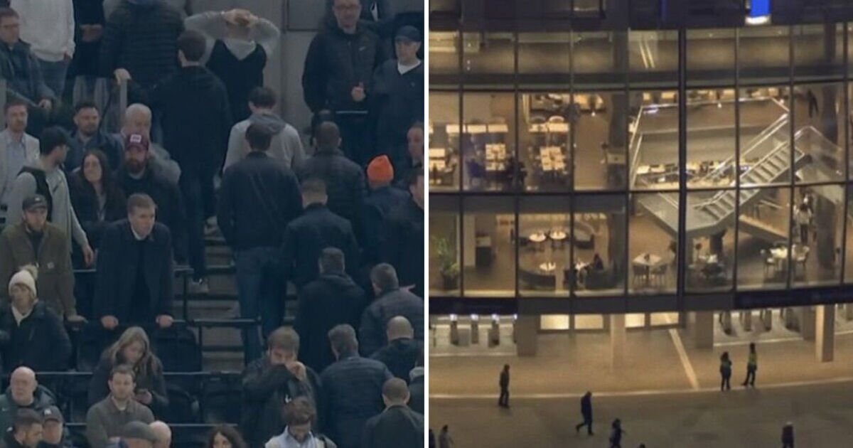 Penggemar Tottenham terlihat meninggalkan stadion pada jeda pertandingan Liga Premier melawan Crystal Palace. Krisis tim London utara ini semakin diperparah ketika mereka mengalami mimpi buruk di babak pertama melawan Palace, yang dipicu oleh kapten Micky ven de Ven yang mendapat kartu merah.
