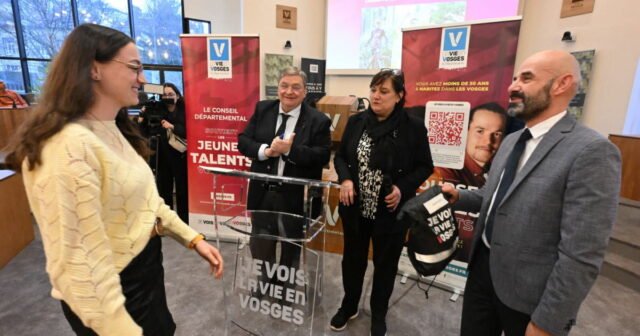 “Kalian adalah permata muda di wilayah ini.” Penerima manfaat dari pameran “Bakat Muda” diberi penghargaan pada hari Senin ini oleh dewan departemen di ruang tunggu Hôtel du Département di Épinal. Tujuan dari upacara ini adalah untuk menyoroti para Vosges muda “yang membuat Vosges bersinar di tingkat nasional, Eropa dan internasional”, jelas François Vannson, presiden departemen tersebut. Seluruh talent atau perwakilannya secara bergiliran menampilkan diri di counter dengan membawa tas “Je Vois la Vie en Vosges” yang berisi t-shirt, sweatshirt, penghangat leher, dan topi. Sementara Caroline Privat-Mattioni, Wakil Presiden, dan Presiden François Vannson mengucapkan selamat kepada para penerima beasiswa, daftar penghargaan mereka ditampilkan di layar raksasa.