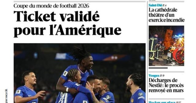 Kualifikasi The Blues ke Piala Dunia 2026, berkas kami tentang diabetes, latihan kebakaran di Katedral Saint-Dié, uji coba TPA Nestlé ditunda hingga Maret 2026, dan halaman kami didedikasikan untuk pemain hoki Anthony Rapenne: akan ada di halaman depan surat kabar harian Anda pada hari Jumat, 14 November.