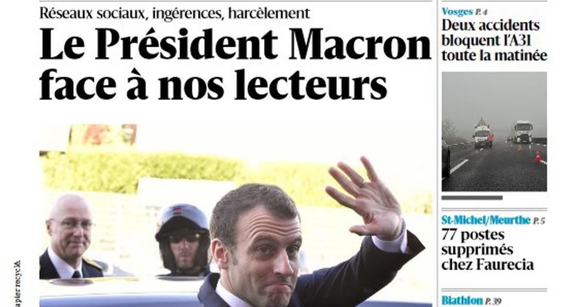 Emmanuel Macron untuk pembaca kami Jumat ini di Mirecourt, kota Epinal mengambil kendali Pencitraan, dua kecelakaan menghalangi A31 sepanjang pagi, 77 pekerjaan hilang di Faurecia di Saint-Michel-sur-Meurthe, dan Amandine Mengin di kompetisi besar di biathlon: itu ada di halaman depan surat kabar harian Anda pada hari Jumat, 28 November.