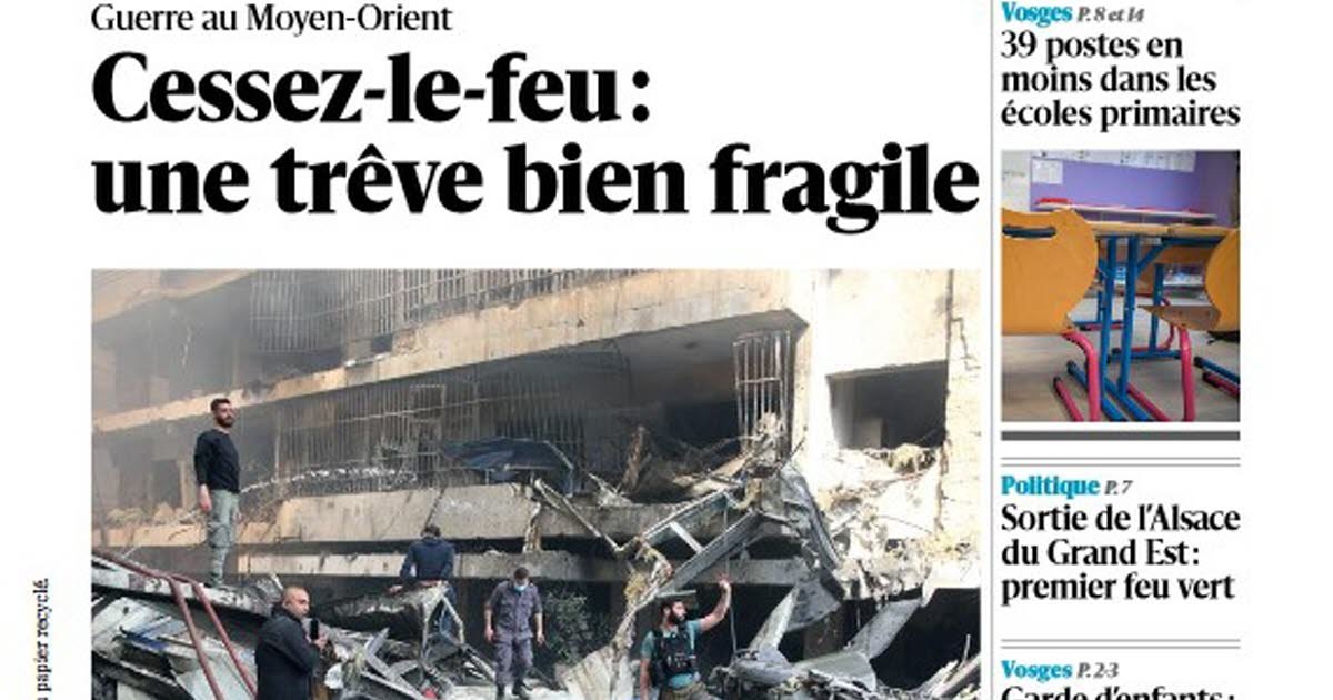 Gencatan senjata yang sangat rapuh dalam perang di Timur Tengah, perampokan klub bola tangan Epinal, pengurangan 39 pekerjaan di sekolah dasar di Vosges, kepergian Alsace dari Grand Est yang disetujui oleh Majelis Nasional, dan pengasuhan anak, sebuah profesi antara panggilan dan tantangan sehari-hari: itu akan ada di halaman depan surat kabar harian Anda pada hari Kamis, 9 April.