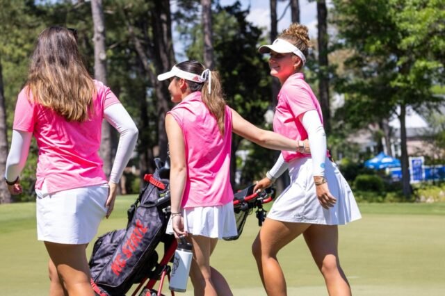 WILMINGTON, NC – Tim golf wanita NC State membuat lebih banyak sejarah di Kejuaraan Golf Wanita ACC, mengamankan tempat kelima dalam stroke play 54 lubang untuk maju ke match play untuk pertama kalinya sebagai sebuah program (sejak ACC menambahkannya ke kejuaraan pada tahun 2020). NC State membukukan skor 12-under 852 (284-283-285), skor Kejuaraan ACC 54 lubang terbaik dalam sejarah program dengan 19 pukulan.